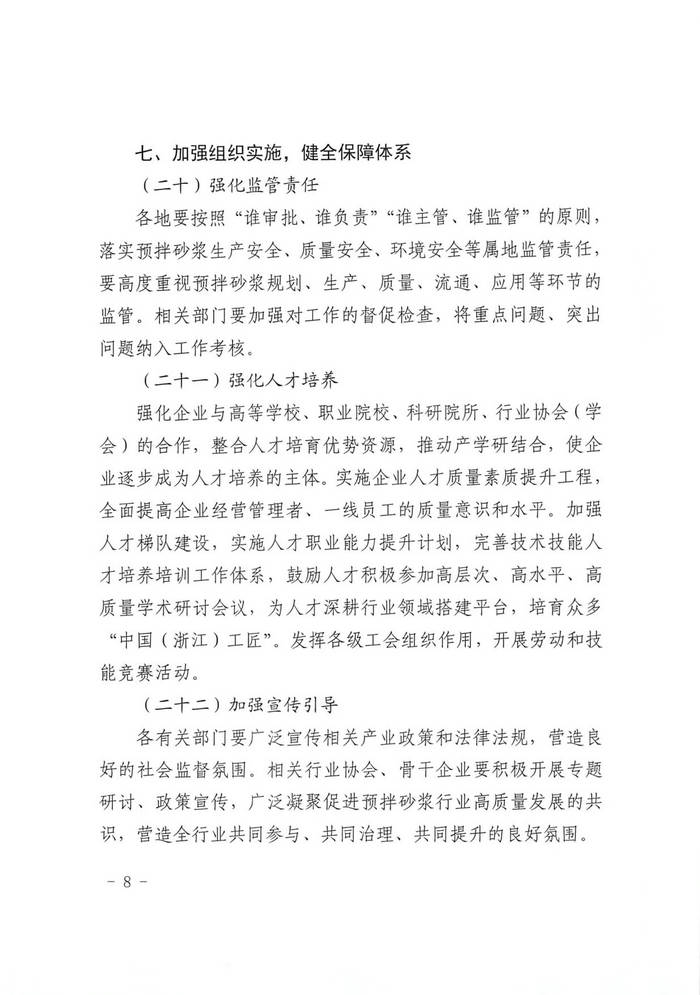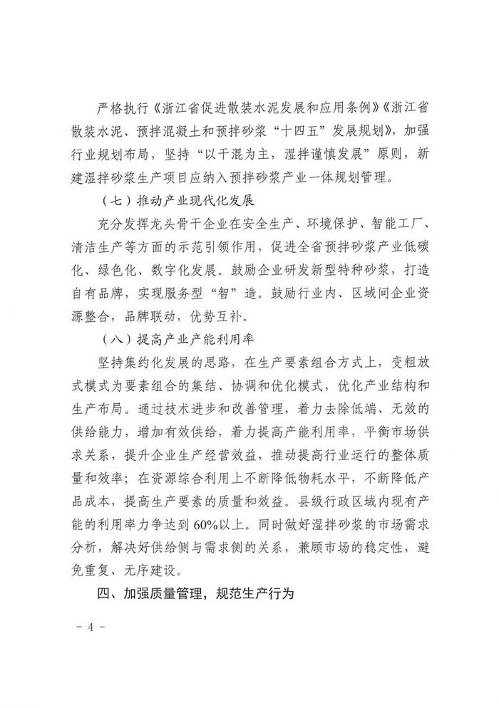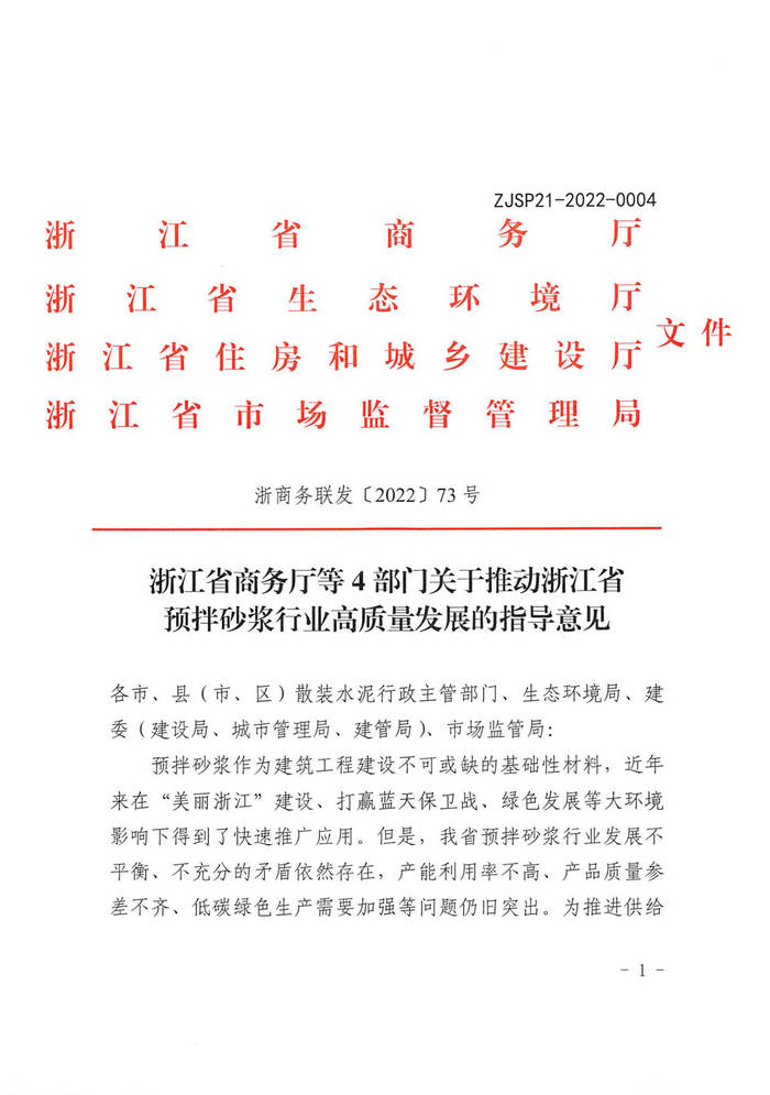 浙江省商务厅等4部门关于推动浙江省预拌砂浆行业高质量发展的指导意见
