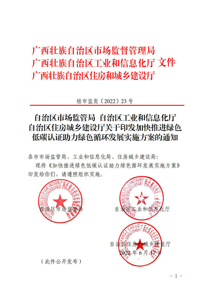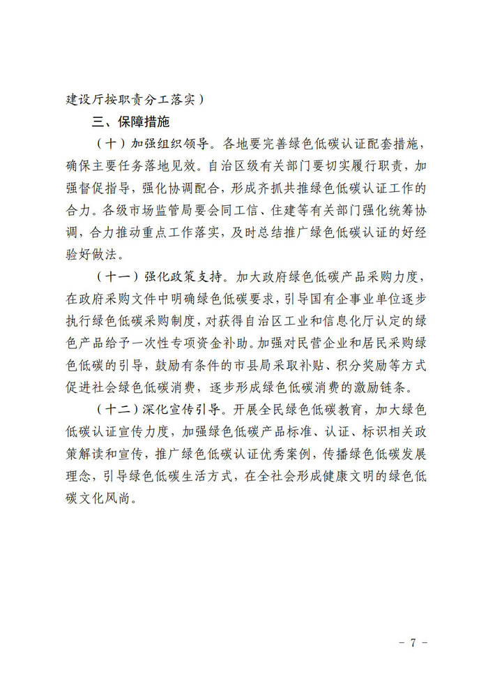 广西壮族自治区市场监管局 自治区工业和信息化厅 自治区住房城乡建设厅关于印发加快推进绿色低碳认证助力绿色循环发展实施方案的通知