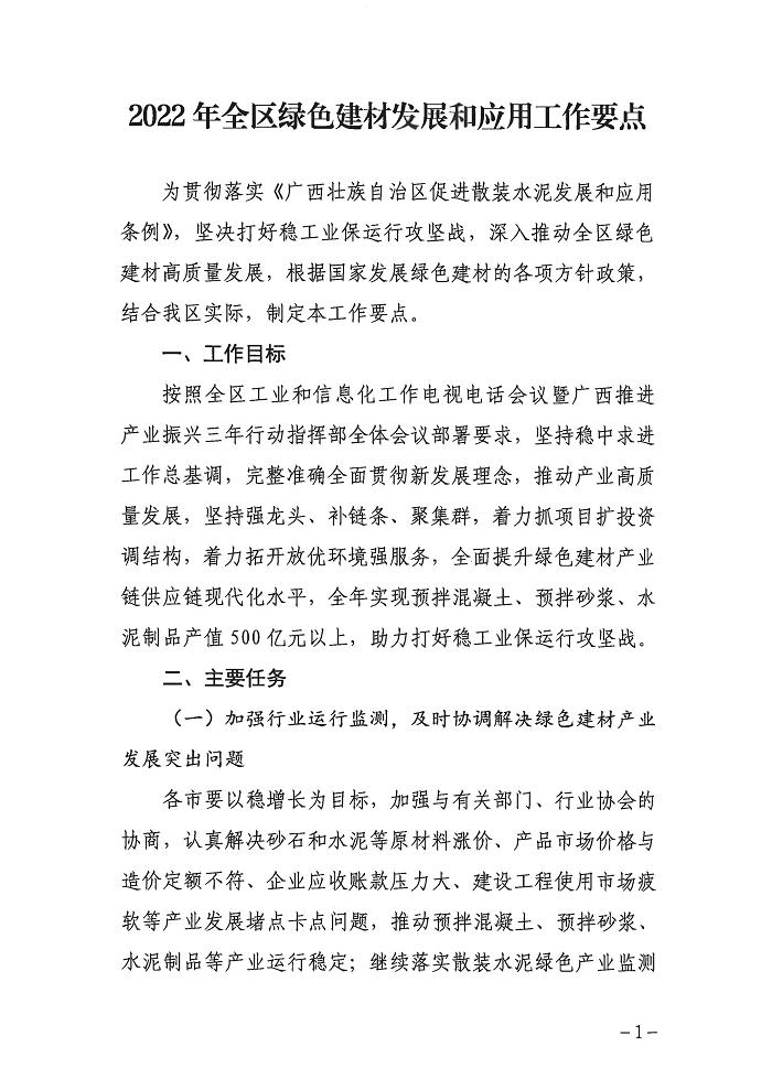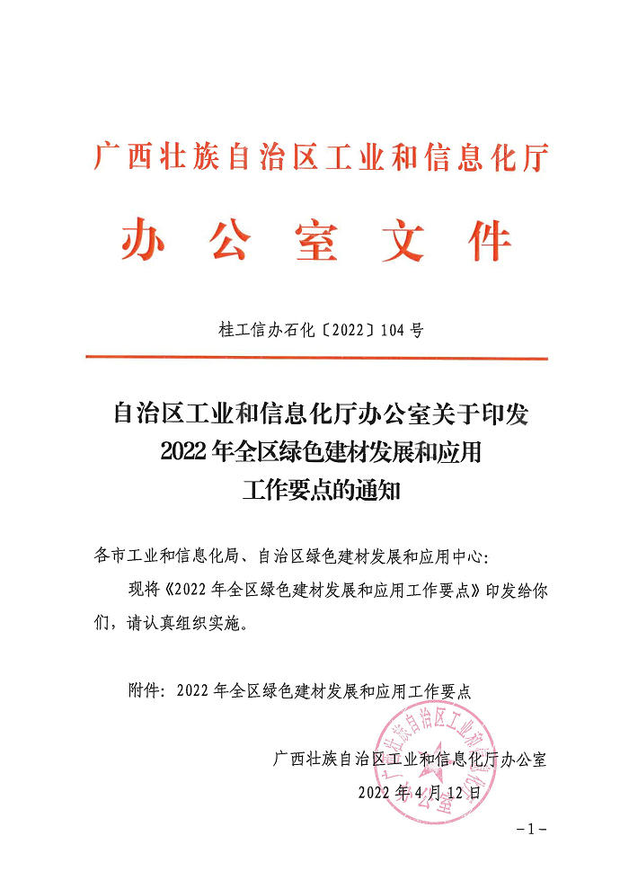 广西区工业和信息化厅办公室关于印发2022年全区绿色建材发展和应用工作要点的通知