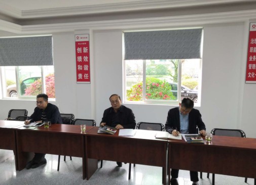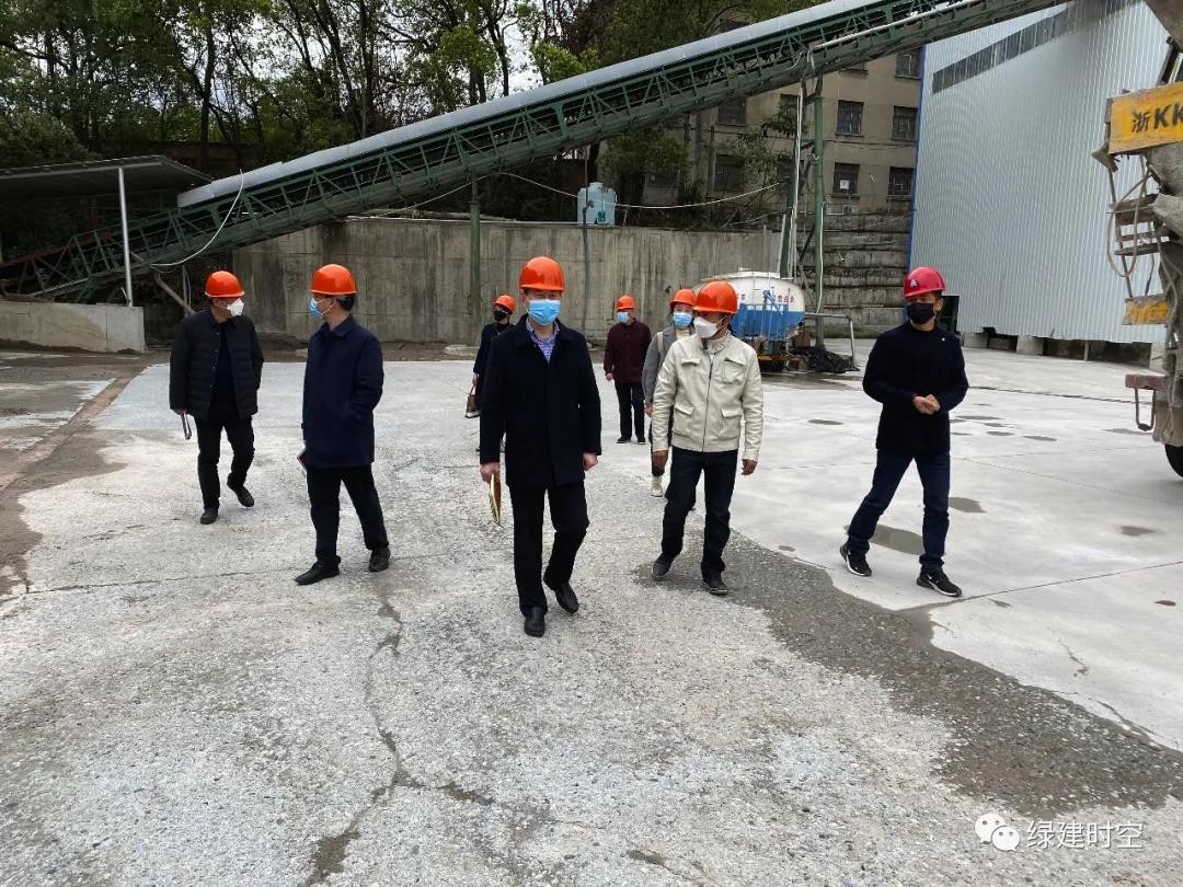 图为3月24日,浙江省散装水泥发展中心主任陈利永一行来到浙江跃通建材有限公司调研