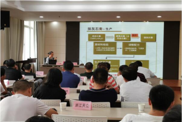此次培训,针对前期走访调研企业中,应企业要求提出的预拌砂浆原材料选材、预拌砂浆新国标介绍、浙江省石膏砂浆应用规程和目前江浙沪石膏砂浆现状等方面进行重点讲解,并针对预拌砂浆产品质量常出现的问题及解决办法与企业进行分析;培训中组织与会人员与方明晖老师进行了互动交流。