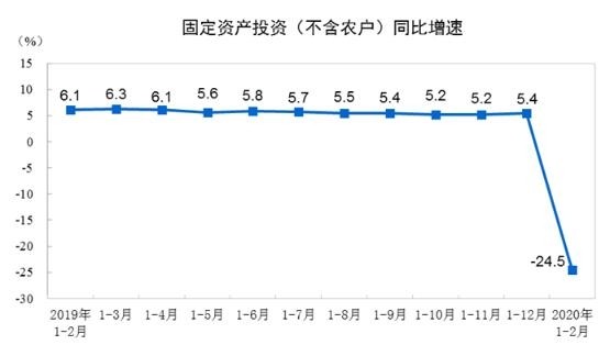 受疫情冲击,今年以来全国固定资产投资大幅下滑,国家统计局的数据显示,1—2月份全国固定资产投资(不含农户)同比下降24.5%。