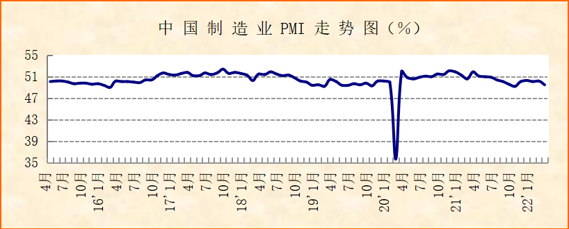 中国物流与采购联合会、国家统计局服务业调查中心发布的2022年3月份中国制造业采购经理指数(PMI)为49.5%,较上月下降0.7个百分点,落入50%以下。结合分项指数和行业PMI来看,受国内多地疫情散发和地缘政治冲突等短期因素的影响,我国经济中供给冲击、成本上升、需求收缩和预期转弱的压力有所加大,经济增速整体有所回调。但基础原材料行业有所回升,对经济有一定稳定作用。
