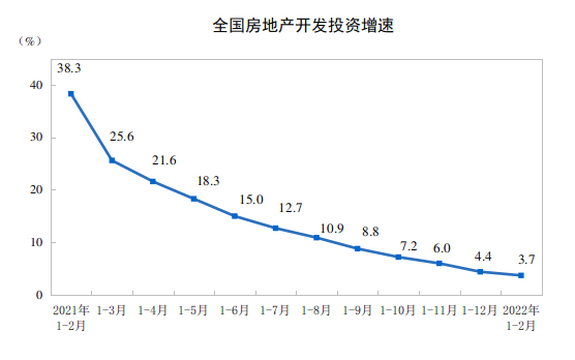 2022 年1-2月份,全国房地产开发投资14499亿元,同比增长3.7%;其中,住宅投资10769亿元,增长3.7%。