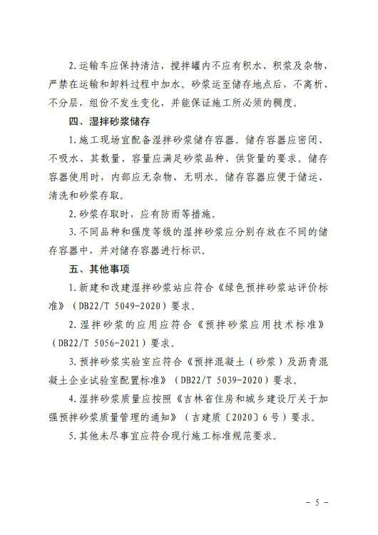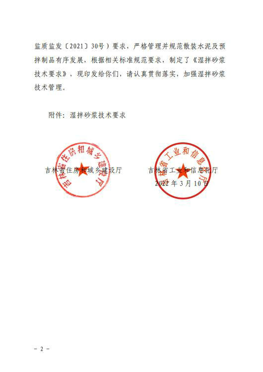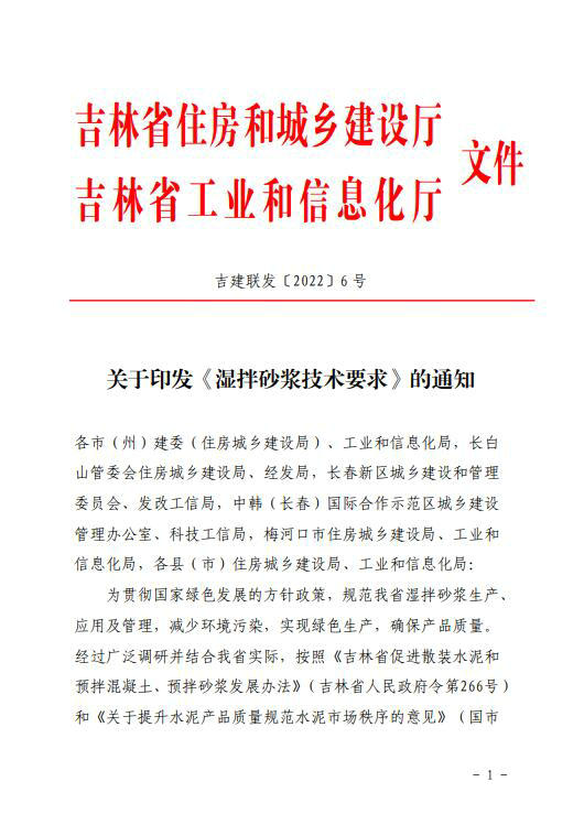 吉林省两部门关于印发《湿拌砂浆技术要求》的通知