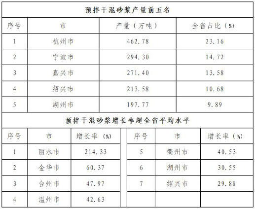 4.推动全省预拌混凝土、预拌砂浆行业的高质量发展。谋划出台浙江省预拌砂浆高质量发展的指导意见,加大对预拌砂浆质量的抽检工作;压实质量管理的企业主体责任,要求企业建立预拌混凝土、预拌砂浆原材料采购的台账制度。