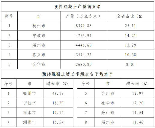 全省预拌混凝土产量首次突破3.3亿立方米,创历史新高。其使用的散装水泥10398.89万吨, 占全省散装水泥供应量比例89.44%,占比提高8.91个百分点。全省预拌混凝土产量增长情况为:一季度增长67.86%,到二季度增长24.19%,到三季度增长14.55%,到四季度增长8.39%。主要原因:(1)从经济增长看:浙江统筹疫情防控和经济发展,大力推动数字化改革,实施新一轮“腾笼换鸟、凤凰涅槃”攻坚行动,推动服务业高质量发展,新动能、传统动能成为互联共进的经济稳定增长力量,全省经济呈现强势恢复态势,拉动了预拌混凝土的需求(2)从区域协同发展看:衢州、丽水、台州、金华等增长较高,地区差距趋向均衡。全省各市统筹发展继续取得良好进展,预拌混凝土发展的均衡性特征更加显著。(3)从投资拉动看:随着国家对新基建的重视,基础设施建设投资增加,亚运会、地铁、轻轨工程等大型和重点投资项目进入高速增长期,房地产项目的发展等等,提高了预拌混凝土需求量。