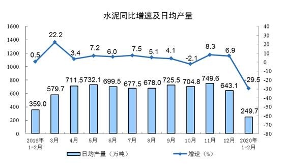根据国家统计局数据显示,2020年1-2月份,全国累计水泥产量1.5亿吨,同比大幅下降29.5%;全国固定资产投资(不含农户)33323亿元,同比下降24.5%;全国房地产开发投资10115亿元,同比下降16.3%。