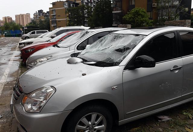被砸坏的私家车,前后挡风玻璃碎裂。