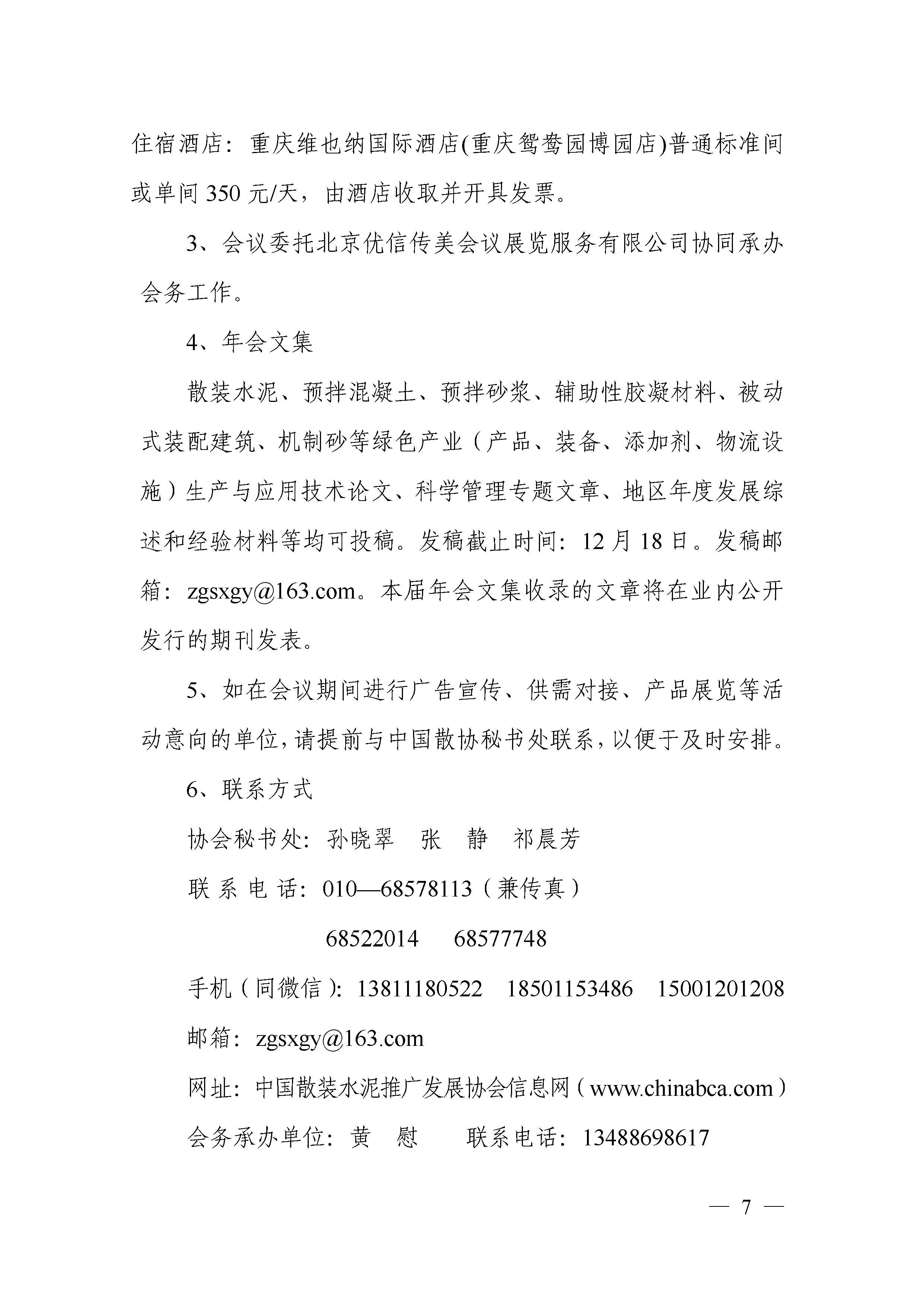 关于召开中国散装水泥推广发展协会第六届六次常务理事会议的通知