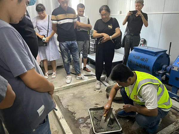 本次培训,邀请了安徽省建设工程测试研究院周爱东高级工程师授课,她从企业试验室建设、检测设备配置、运行管理等方面由?入深阐述怎样做好试验室技术管理,并结合《绿色建材认证》进一步强调质量管理体系的重要性。本次培训理论联系实际,在检测中心对预拌砂浆产品保水性、稠度、拉伸粘结强度、抗压强度等多项指标进行现场检测演示,交流相关规范要求,为企业试验室检测人员的理论和实际操作能力提升打下基础。