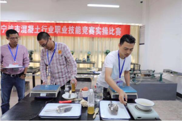 竞赛活动分理论考试和实操比赛。理论考试在宁波海逸大酒店举行,实操比赛在宁波工程学院建筑与交通工程学院举行。共有来自7个区县(市)46家企业48名选手(技术负责人或试验室主任)报名参赛,是历届职业技能竞赛中规模最大、规格最高、参赛人数最多的一次。经过紧张激励的比赛,最后,王海康(宁波市建设预拌混凝土有限公司)、杜朝辉(宁波升顺建材有限公司)、孙贝(宁波恒立混凝土有限公司)分获一、二、三名,同时,该三名的选手将组建宁波代表队参加“2019年浙江省混凝土行业‘开工快线杯’职业技能竞赛”决赛。