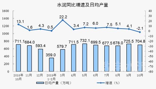 根据国家统计局数据显示,2019年1-10月份,全国累计水泥产量19.1亿吨,同比增长5.8%;全国固定资产投资(不含农户)510880亿元,同比增长5.2%,增速比1-9月份回落0.2个百分点;全国房地产开发投资109603亿元,同比增长10.3%,增速比1-9月份回落0.2个百分点。