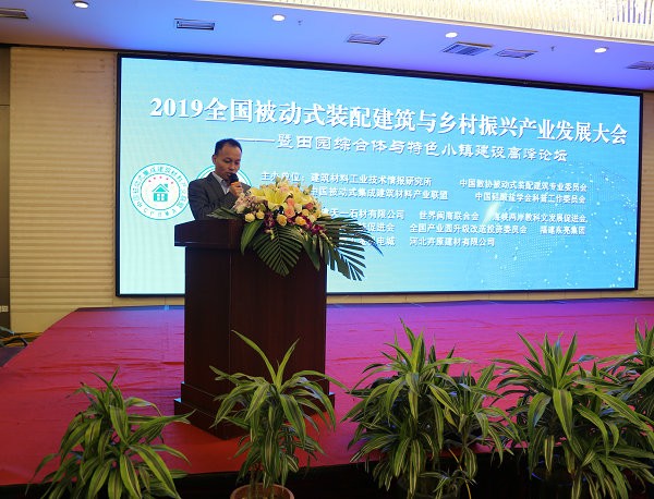 “2019全国被动式装配建筑与乡村振兴产业发展大会暨田园综合体与特色小镇建设高峰论坛”于2019年12月6-8日在福建泉州中国石材与水暖之乡南安成功举办。大会由中国建筑材料工业技术情报研究所、中国散装水泥推广发展协会被动式装配建筑专业委员会(以下简称“中国散协被动式装配建筑专业委员会” )、中国被动式集成建筑材料产业联盟、中国硅酸盐学会科普工作委员会共同主办。来自德国、美国等国家及中国大陆与台湾地区的专家学者、建材业人士200多人参加大会。