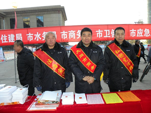 市商务局四级调研员闫慧敏、散装水泥和混凝土管理办公室主任白文、法制科科长朱宏源、市场秩序科科长郭鹏等全程参加宣传活动。