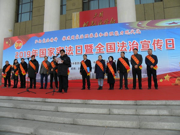 今年的“12·4”国家宪法日的主题是“弘扬宪法精神,推进国家治理体系和治理能力现代化”。市散装办提前召开会议对活动进行部署,落实人员、展板和宣传资料等活动准备工作。整个宣传活动共制作展板2块,绶带3条,发放法律法规、安全生产、“扫黑除恶”等普法资料3000余份,解答群众现场咨询30余人次,营造了学法、普法的良好社会氛围。