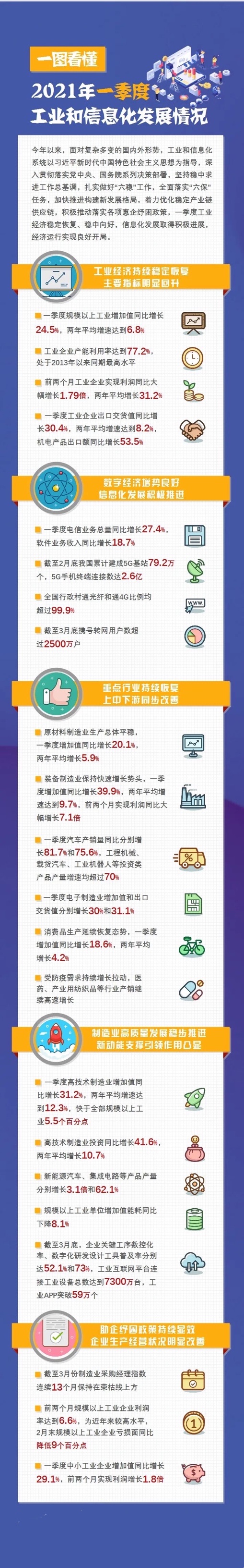工信部:2021年一季度工业经济稳定恢复、稳中向好