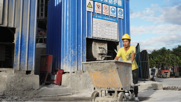▲海南自贸港重点项目使用散装水泥绿色建材