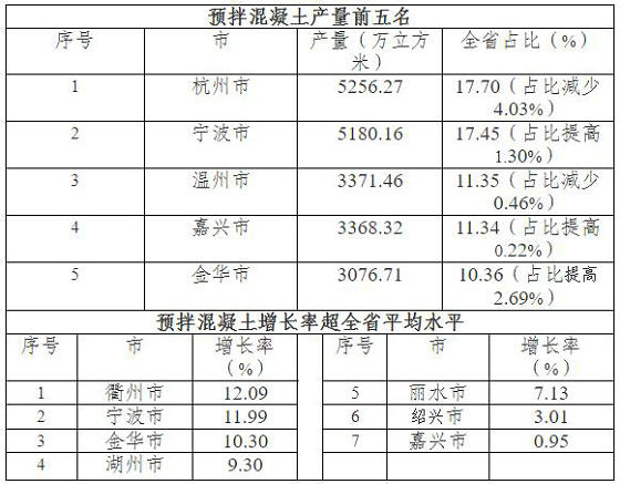 全省741家预拌混凝土生产企业,预拌混凝土产量2.97亿立方米,同比减少104.69万立方米,下降0.35%,位居全国前列。分市排名情况如下: