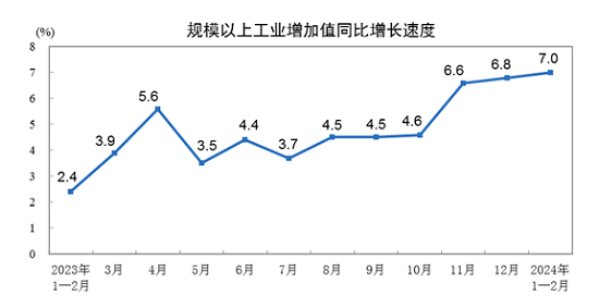 一、2024年1—2月份规模以上工业增加值增长7.0%