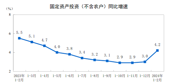 三、2024年1—2月份全国固定资产投资增长4.2%