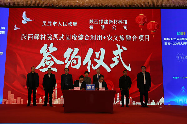 会上,陕西绿材院与灵武市人民政府现场签约“固废利用+文旅融合”项目,标志着政企合作推动区域绿色发展的新实践。