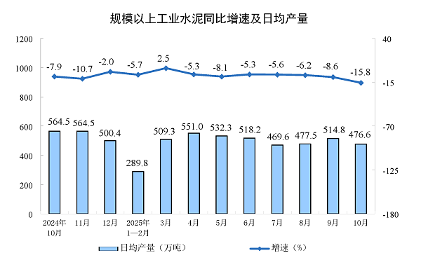 二、2025年1—10月全国水泥产量14亿吨,同比下降6.7%