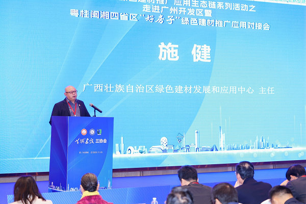 2025年11月25日,广东省绿色建材推广应用生态链系列活动之走进广州开发区暨粤桂闽湘四省区“好房子”绿色建材推广应用对接会在广州市顺利举行。粤桂闽湘四省绿建部门联合广州市黄埔区政府及相关行业单位共同主办。广东省市场监督局、工信厅、住建厅等主管领导出席并致词。粤桂闽湘四省近200家行业协会、科研机构及企业,约300名代表参会。