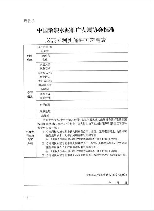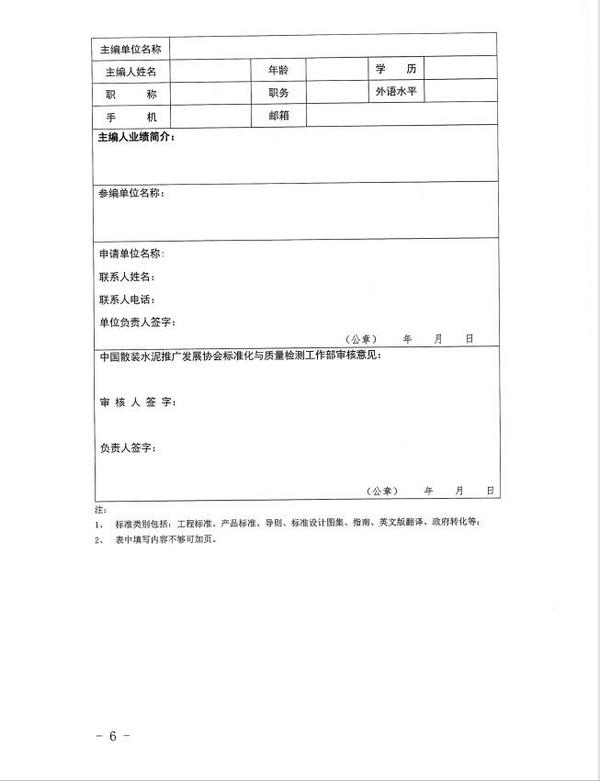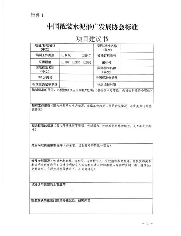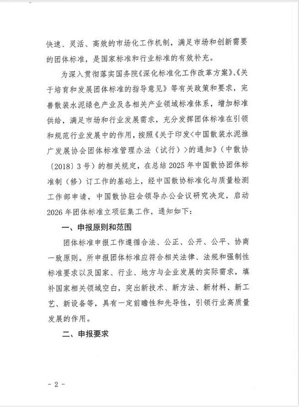 关于征集中国散装水泥推广发展协会2026年度团体标准项目的通知
