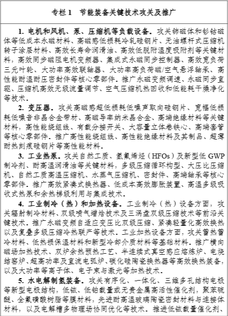 到2028年,节能装备关键材料、零部件取得突破,重点行业领域用能系统匹配性、实际运行效率持续提升,电机、变压器等节能装备能效水平达到国际领先。节能装备市场占有率进一步提高。推广一批先进适用节能装备更新改造系统解决方案,打造一批人工智能赋能节能装备应用场景,培育一批具有国际竞争力的节能装备骨干企业和产业集群。