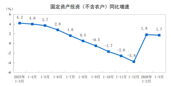 三、2026年1—3月份全国固定资产投资增长1.7%