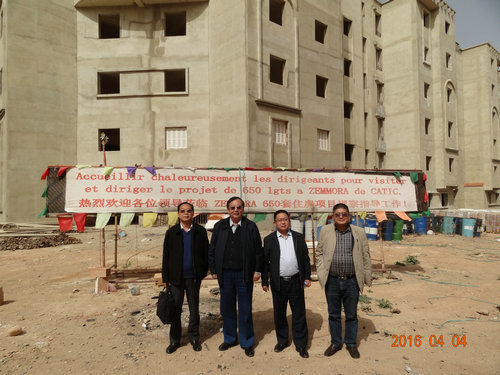 四人考察小组在阿国首都阿尔及尔及周边地区,对中方承包的建设项目进行了实地考察。分别与中航技阿国分公司、浙江建设投资有限公司驻阿国分公司以及浙江东阳建筑工程有限公司驻阿国分公司的项目负责人和工程技术人员在建设工地就建筑砂浆机械化施工的可行性进行了实地考察与技术交流。
