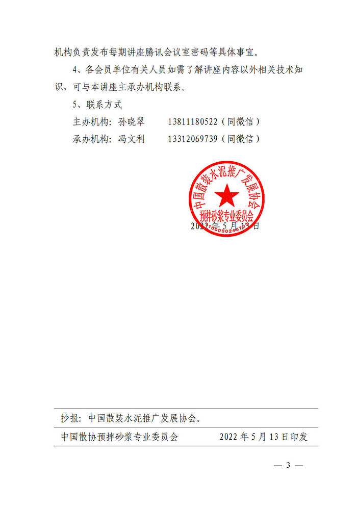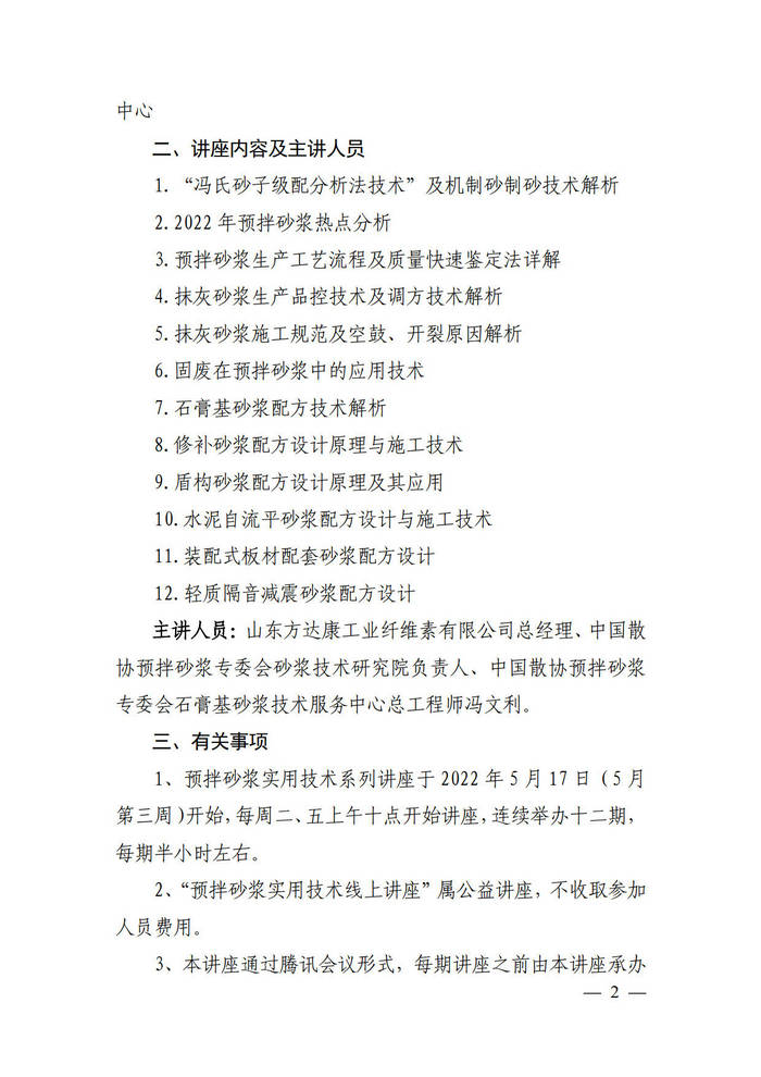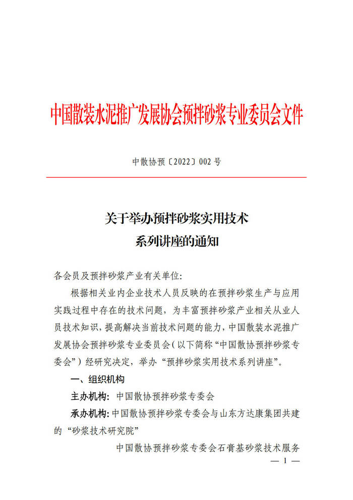 关于举办预拌砂浆实用技术系列讲座的通知