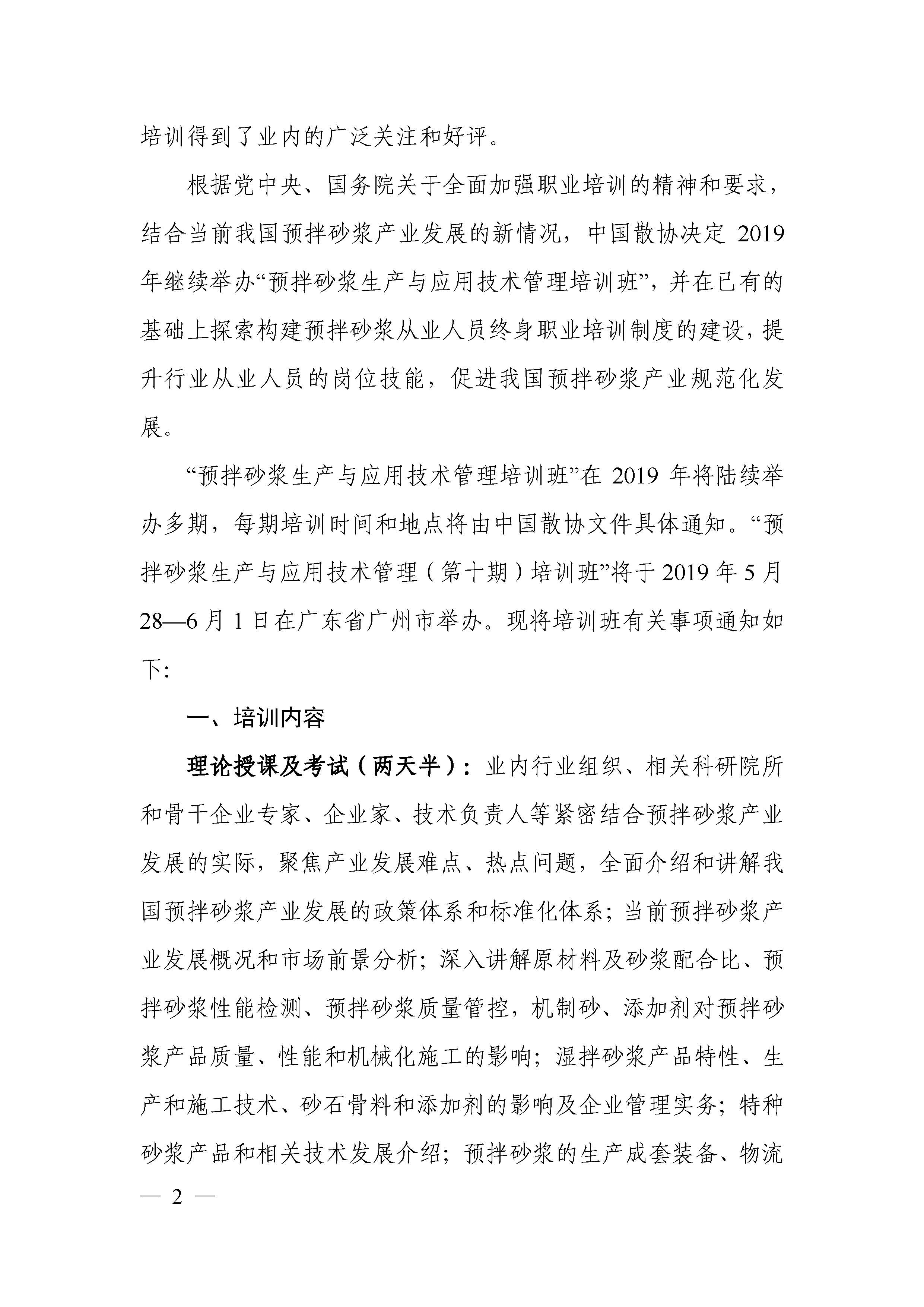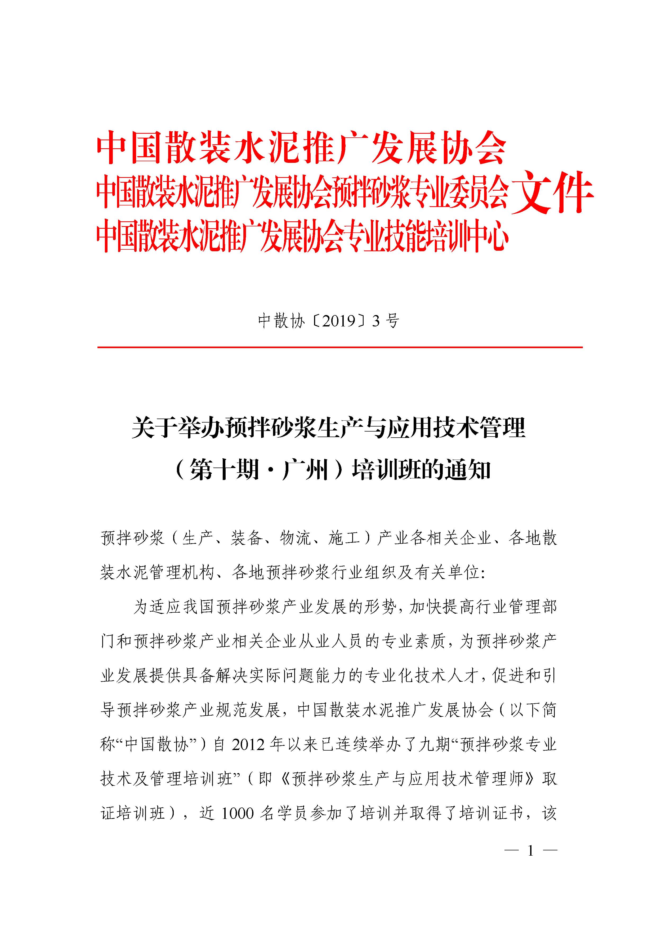 关于举办预拌砂浆生产与应用技术管理(第十期?广州)培训班的通知