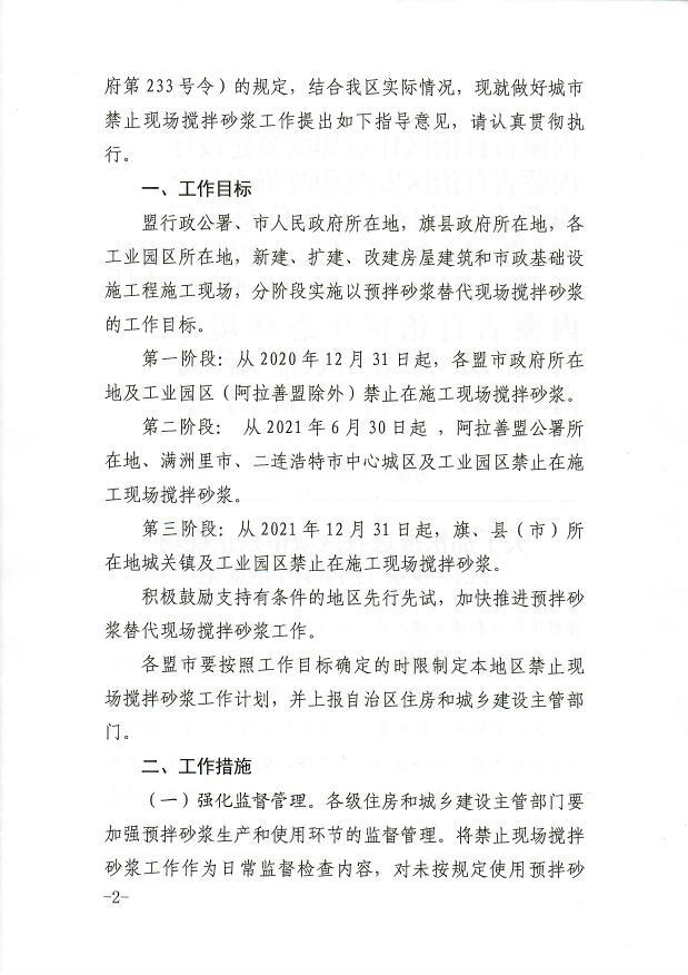 内蒙古:关于加快推进我区城市禁止现场搅拌砂浆工作的指导意见