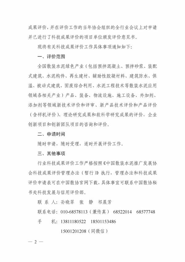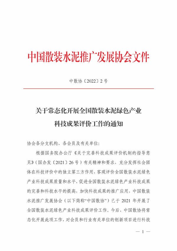 关于常态化开展全国散装水泥绿色产业科技成果评价工作的通知