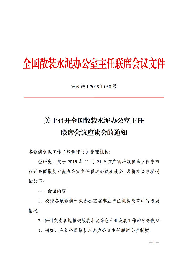 关于召开全国散装水泥办公室主任联席会议座谈会的通知