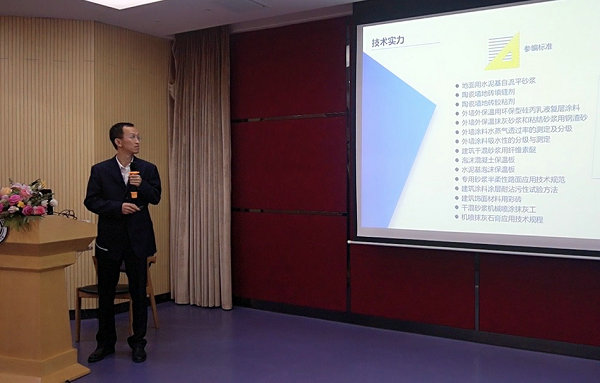 广东龙湖科技股份有限公司汕头技术中心经理罗天翼介绍了添加剂在石膏基砂浆的应用。