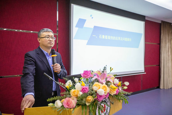 中国散协预拌砂浆专业委员会/装备技术专业委员会专家咨询委员会委员、山西省建筑材料工业设计研究院石膏中心主任、山西省建材工业协会砂浆分会秘书长滕朝晖主讲了石膏基抹灰砂浆调配及应用技术解析。