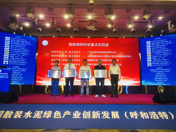 孙岩秘书长宣读了中国散协预拌砂浆专委会设立的首批四个重点实验室的决定,由中国散协崔源声理事长向首批设立的预拌砂浆重点实验室单位颁发了牌匾。根据预拌砂浆产业发展实际,为了加快新技术、新产品的研发和应用,结合国家科技部、工信部有关科技类、工业类重点实验室建设的规范性要求,依据《中国散装水泥推广发展协会重点实验室管理办法(试行)》的有关规定,中国散协预拌砂浆专业委员会、纳米材料科学研究院决定在广东浪淘砂新型材料有限公司、山西省石膏综合利用工程技术研究中心设立“预拌砂浆(广东)重点实验室”、“预拌砂浆(山西)重点实验室”;中国散协预办砂浆专业委员会、装备技术专业委员会、纳米材料科学研究院决定在摩泰克梅蒂斯(中国)科技有限公司、福建南方路面机械股份有限公司设立“预拌砂浆(湖南)重点实验室”、“预拌砂浆(福建)重点实验室”。