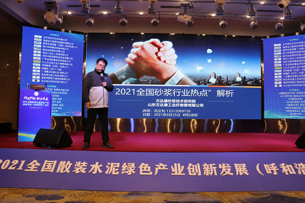福建南方路面机械股份有限公司大区总监吴东辉、广东浪淘砂新型材料有限公司华北区技术总监梅智勇、培福德(PFT)中国总经理王卫军、摩泰克梅蒂斯(中国)科技有限公司东北区总监曲洪宇、山西省建筑材料工业设计研究院石膏研究中心主任滕朝晖、北京弗特恩科技有限公司技术负责人王军泽、四川坤辰建筑机械有限公司总经理李国清、山东方达康工业纤维素有限公司总经理冯文利分别作了《再谈机制砂石》、《节能增效剂在旋窑锻烧中的应用》、《湿拌砂浆技术误区》、《干混砂浆的机械化施工的发展与应用》、《普通砂浆行业的转型和升级》、《石膏砂浆配方体系研讨及应用研究》、《可再分散乳胶粉的应用特性》、《预拌砂浆产业发展中争议之我见》、《2021预拌砂浆热点分析》的专题演讲,分享了接地气的预拌砂浆产业领域的经验和存在问题的解决方案。