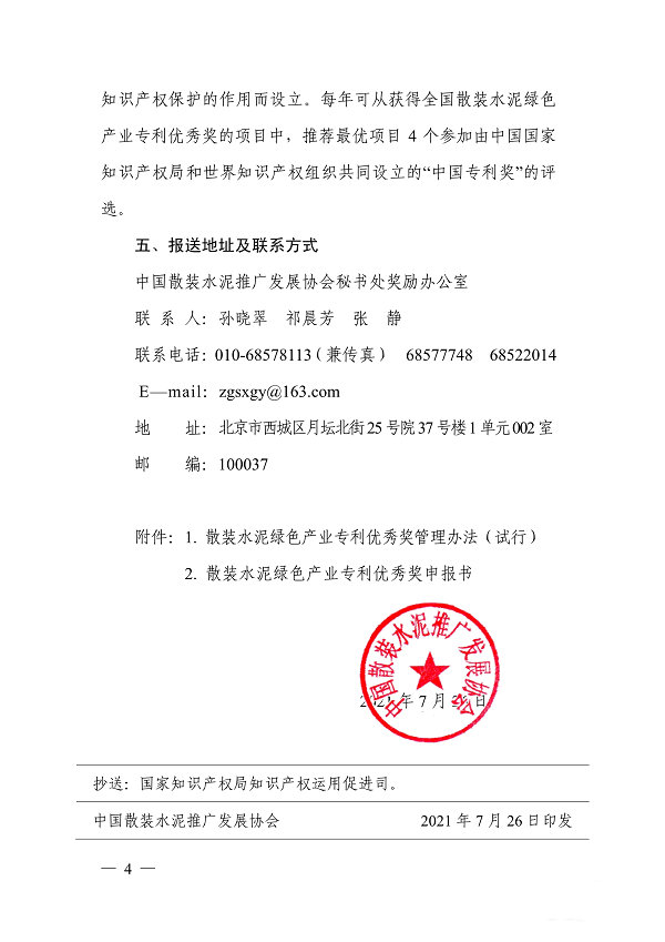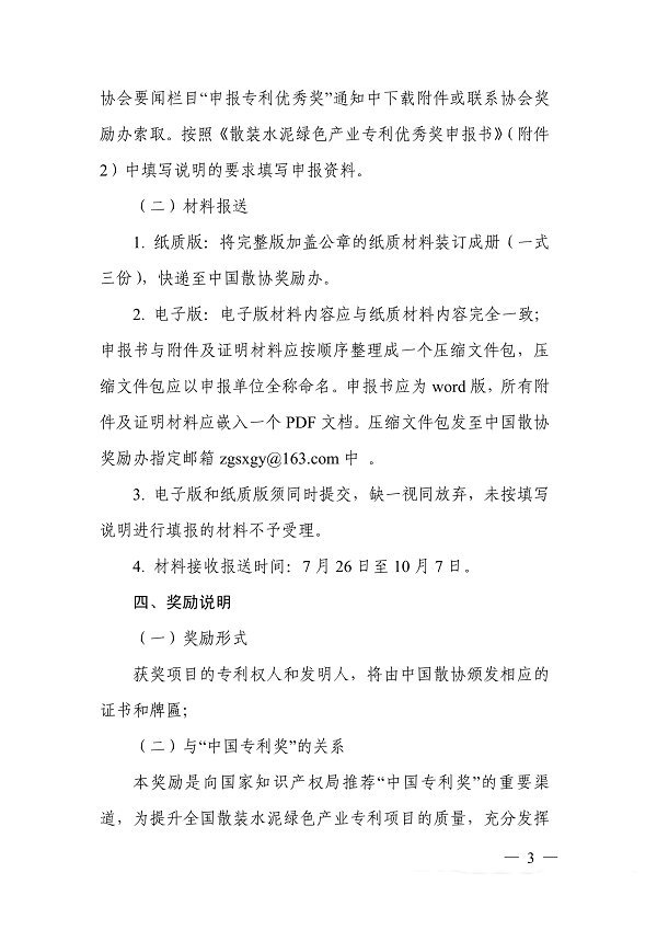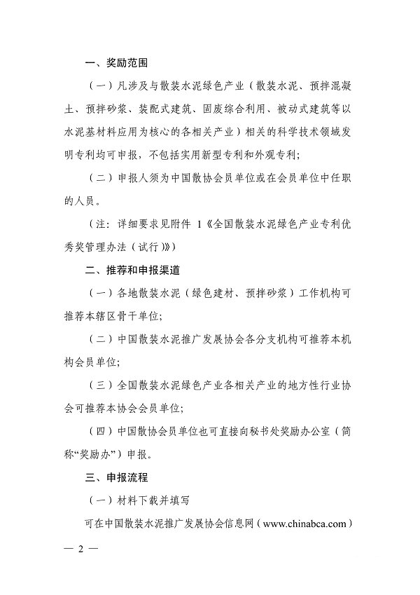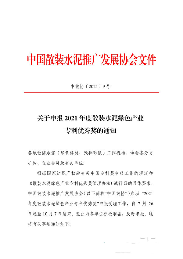 关于申报2021年度散装水泥绿色产业专利优秀奖的通知