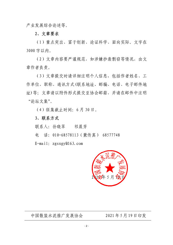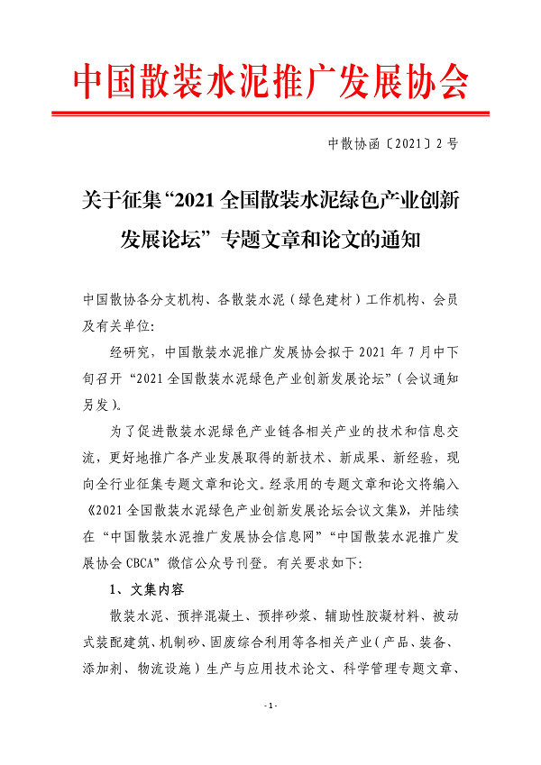 关于征集“2021全国散装水泥绿色产业创新发展论坛”专题文章和论文的通知