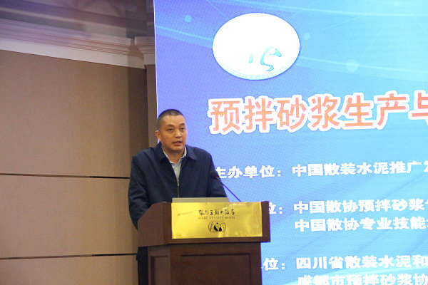 培训班开班仪式由中国散协副理事长兼秘书长孙岩主持。中国散协监事长丁建一代表主、承办方致辞。四川省散装水泥和预拌砂浆推广发展协会李正禄会长受因故未能出席开班仪式的四川省散装水泥发展中心杨雷二级调研员的委托,代表四川省散装水泥主管部门和协会致辞。成都市建设工程材料监督服务站代正才站长、成都市预拌砂浆协会陈钰会长分别致辞。