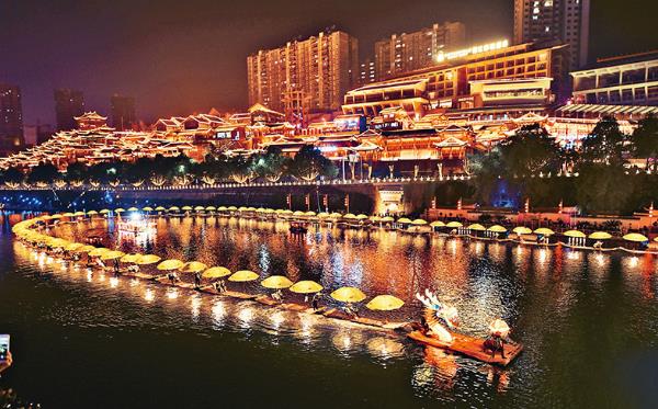 我国拥有14亿多人口、4亿多中等收入群体,是全球超大规模且最有增长潜力市场。2022年,社会消费品零售总额44万亿元。图为2023年1月28日,游客在湖北省恩施土家族苗族自治州宣恩县仙山贡水旅游区乘坐“贡水游龙”赏夜景。