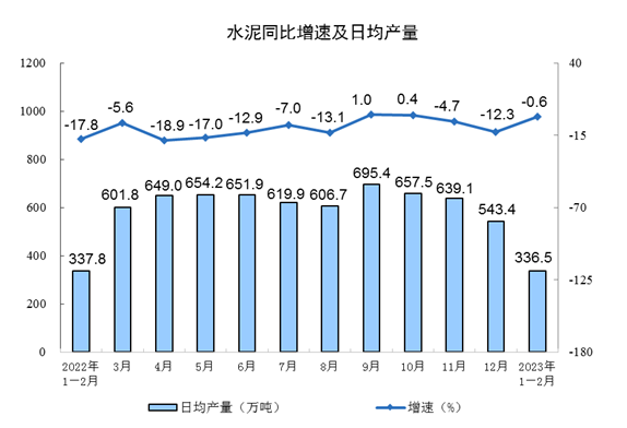 2023年1—2月,全国水泥产量19855万吨,同比下降0.6%。