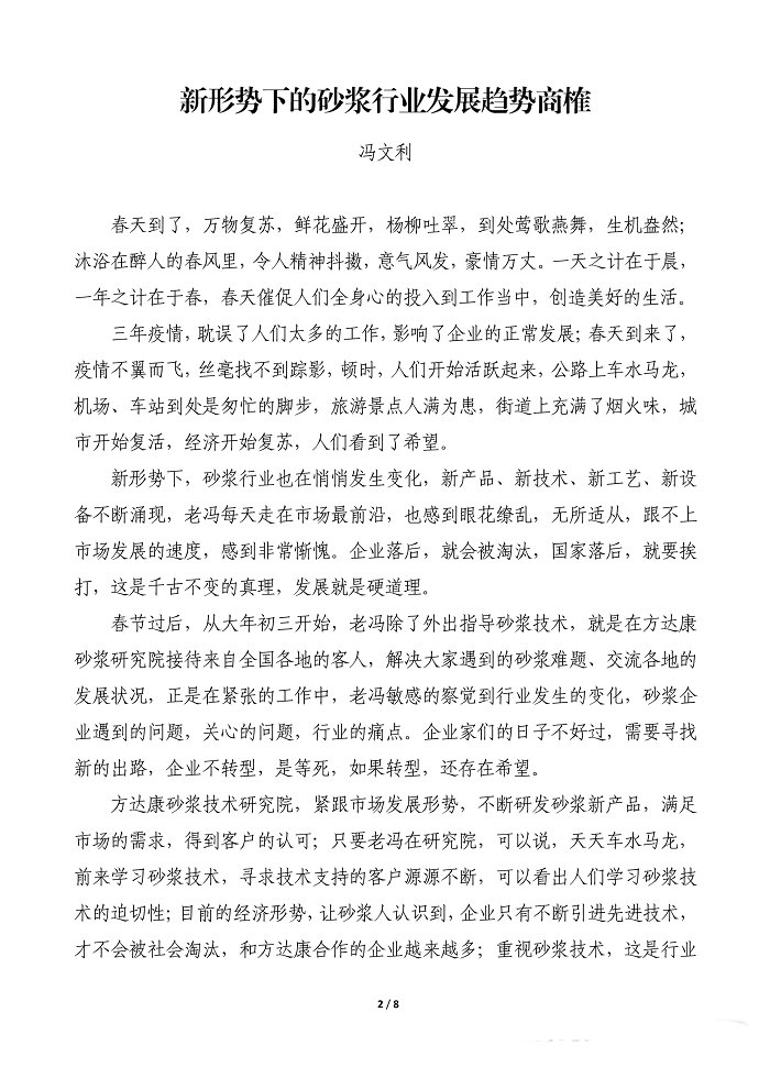 冯文利:新形势下的砂浆行业发展趋势商榷
