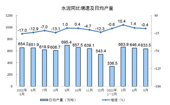 一、2023年1—5月份全国水泥产量同比增长1.9%