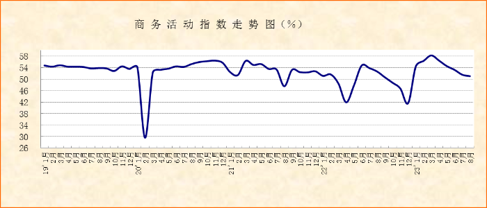 中国物流与采购联合会、国家统计局服务业调查中心发布的2023年8月份中国非制造业商务活动指数为51%,较上月下降0.5个百分点,连续2个月在51%左右,显示非制造业增速虽有小幅放缓,但运行较为平稳。行业数据显示,建筑业有所升温,服务消费继续活跃,社会融资活动有所回升。