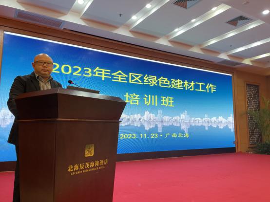 2023年11月23日,广西绿色建材发展和应用中心根据学习贯彻习近平新时代中国特色社会主义思想主题教育“学思想、强党性、重实践、建新功”的总体要求以及中心年度工作安排,紧贴行业痛点难点开展业务培训,助力行业绿色低碳、纾困转型,实现高质量发展。培训会在美丽的滨海城市、广西唯一的“政府采购绿色建材促进建筑品质提升”全国试点城市珠城北海市成功举办,全区业务管理部门、行业协会、企业领导及有关人员近200余人参加培训。